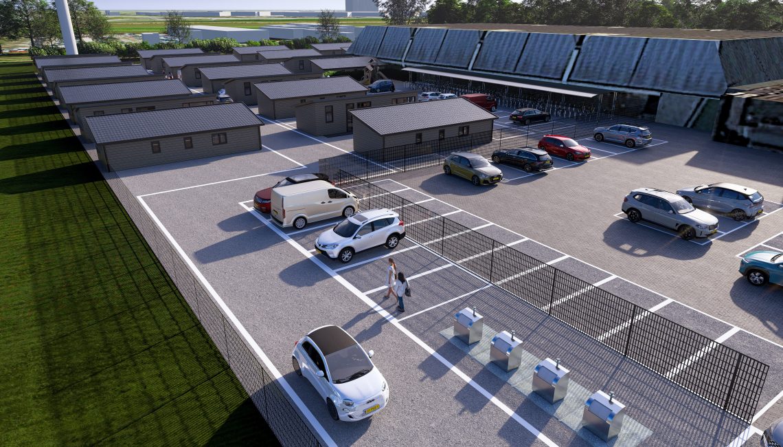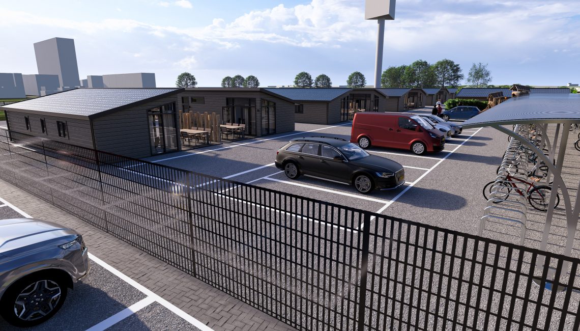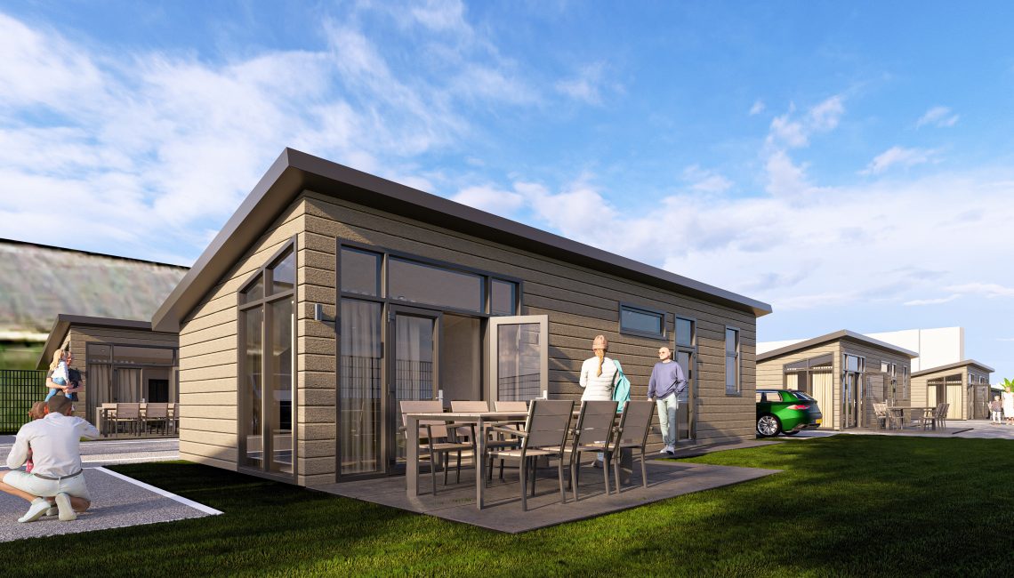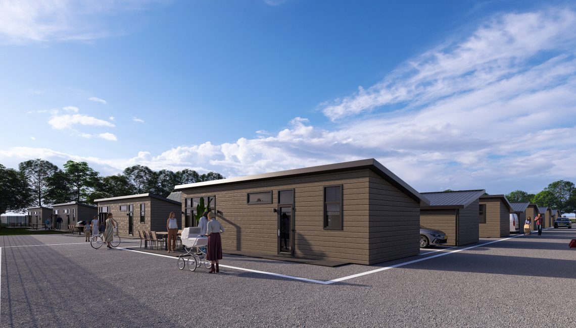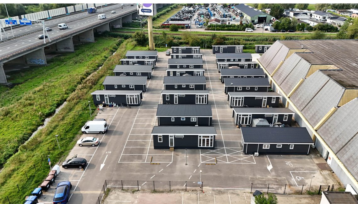 In Gorinchem plaatsten we 25 flexwoningen. Ze zijn gesitueerd aan de snelweg en daarom voorzien van extra geluidsisolatie.