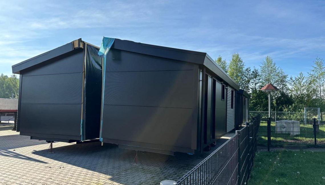 Vier mooie chalets voor de opvang van vluchtelingen in Adendorf (Duitsland). Deze dubbele chalets passen qua uitstraling goed in de omgeving en bieden door hun omvang een riante leefruimte. De luxe uitstraling past perfect bij de omgeving.