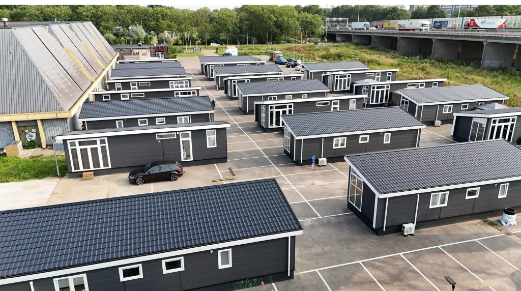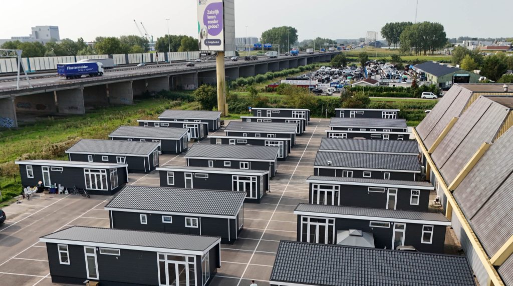 In Gorinchem plaatsten we 25 flexwoningen. Ze zijn gesitueerd aan de snelweg en daarom voorzien van extra geluidsisolatie.