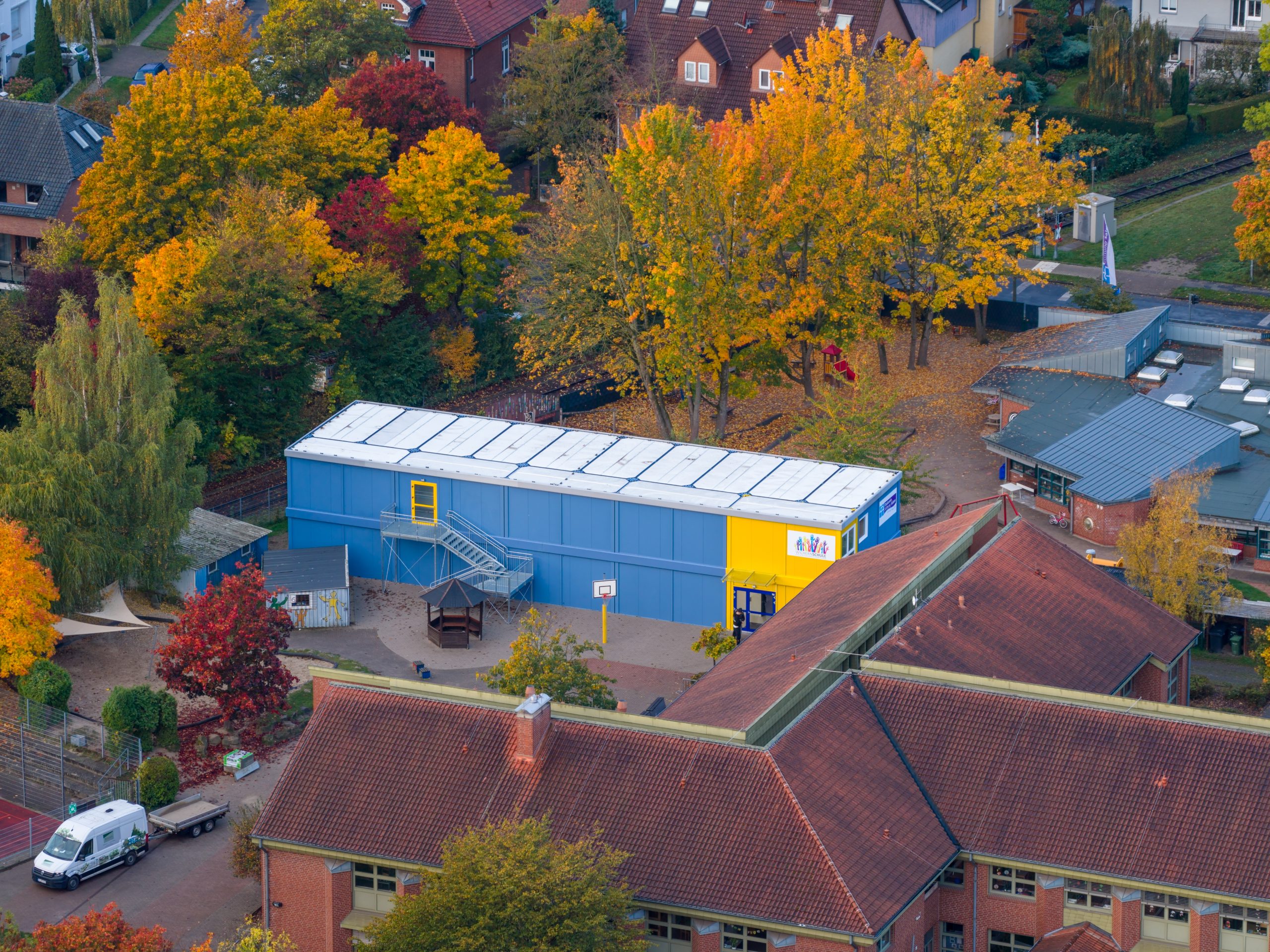 Een schoolgebouw in Minden, naast een bestaand gebouw. Het nieuwe gebouw heeft twee verdiepingen. Naast de zes klaslokalen met ruimte voor zo'n 100 leerlingen, is er in het gebouw ook sanitaire ruimte met o.m. een toilet voor mindervaliden.
