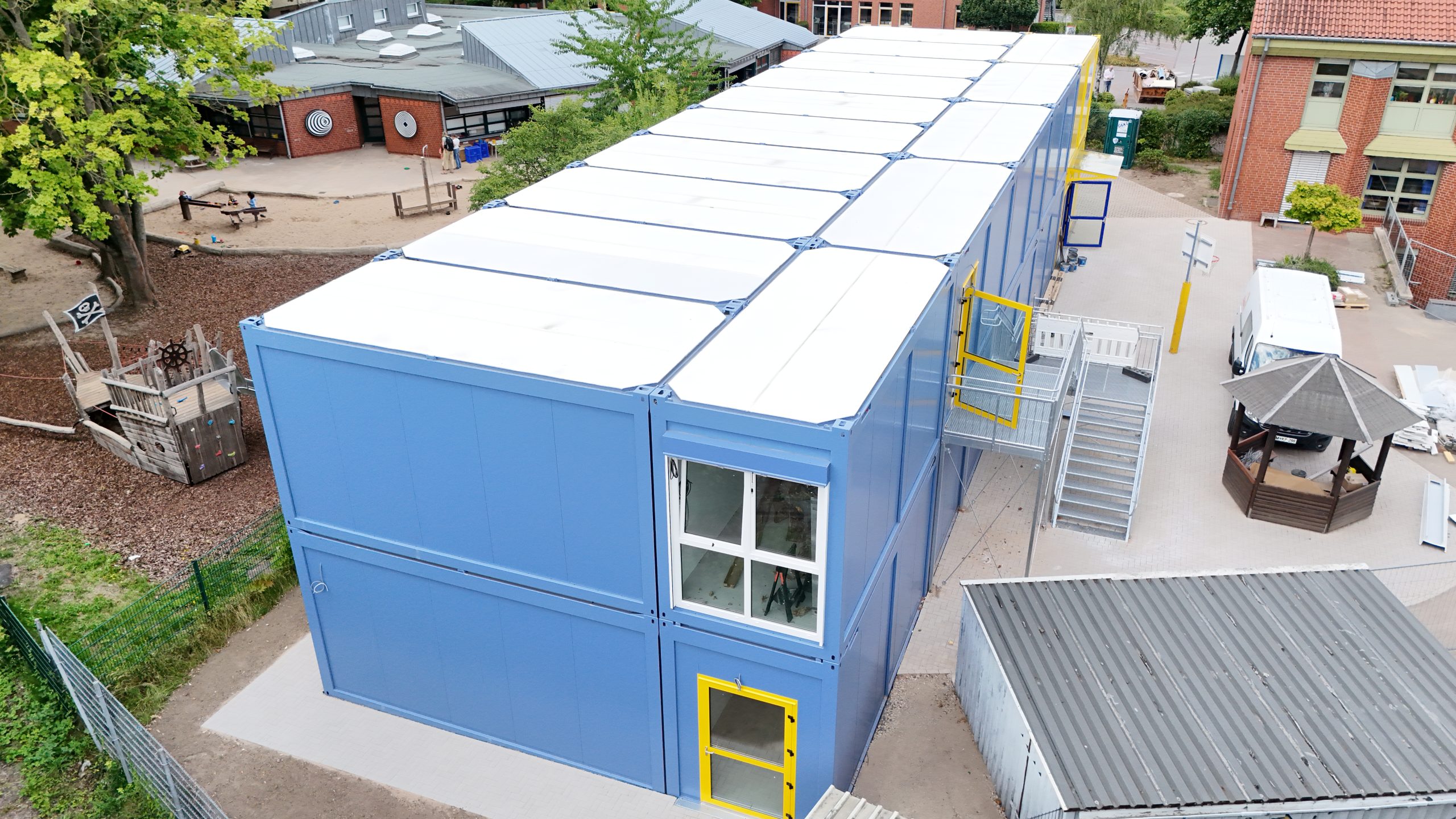 Benieuwd naar de mogelijkheden? Zie bijvoorbeeld ons project in Minden, waar we een gebouw van twee verdiepingen, inclusief (miva)toiletvoorzieningen plaatsen.